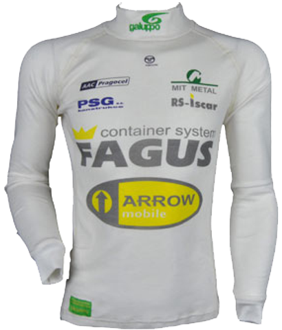 Povinnou součástí vybavení závodního jezdce je již mnoho let kromě nehořlavé závodní kombinézy rovněž nehořlavé spodní prádlo. Ačkoli zůstává v průběhu jízdy fanouškům a fotografům skryto, je celkem obvyklé, že se jezdec ve volném čase pohybuje v paddocku nebo servisní zóně s rozhalenou kombinézou. Díky moderním technologiím potisku je tak k dispozici další plocha, kterou lze graficky zajímavě upravit a využít ke kvalitní a nápadité prezentaci sponzorů. Nehořlavé spodní prádlo, vyráběné firmou Galuppo z nejmodernějších vysoce prodyšných funkčních Nomex materiálů, je velmi příjemné na dotek a dodatečně ošetřeno speciální úpravou „Refresh“, která dodává materiálu termoregulační vlastnosti a omezuje pocení, čímž zvyšuje komfort jezdce v teplém počasí. Samozřejmostí zůstává, že je nehořlavé spodní prádlo od firmy Galuppo opatřeno platnou homologací FIA a veškerý potisk je realizován schválenou technologií, která nemá negativní vliv na ohnivzdorné vlastnosti prádla.